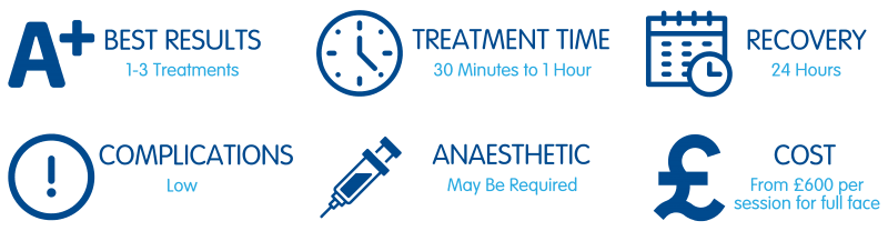 Treatments are carried out every 4-6 weeks and typically between 1 and 3 treatments are recommended for best results. Top-up sessions are performed as required, but usually only once or twice a year.