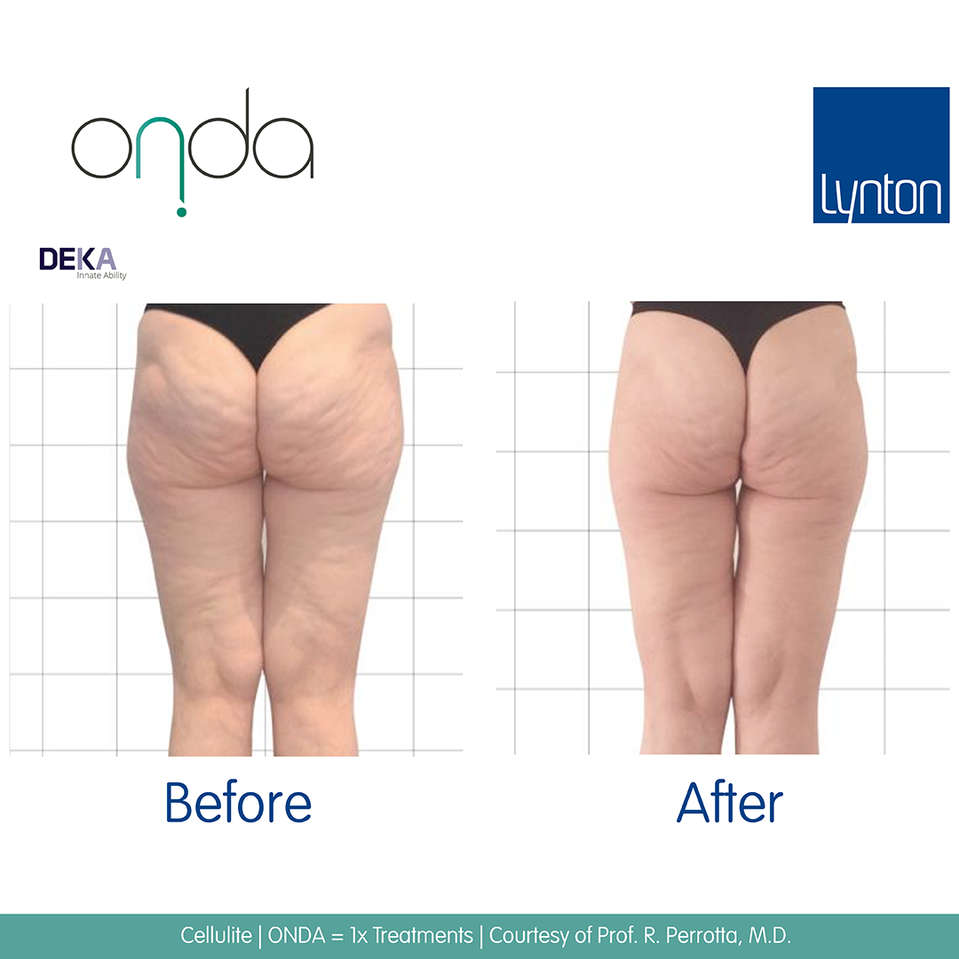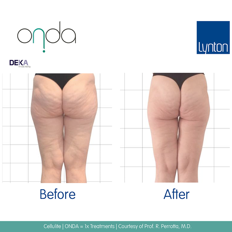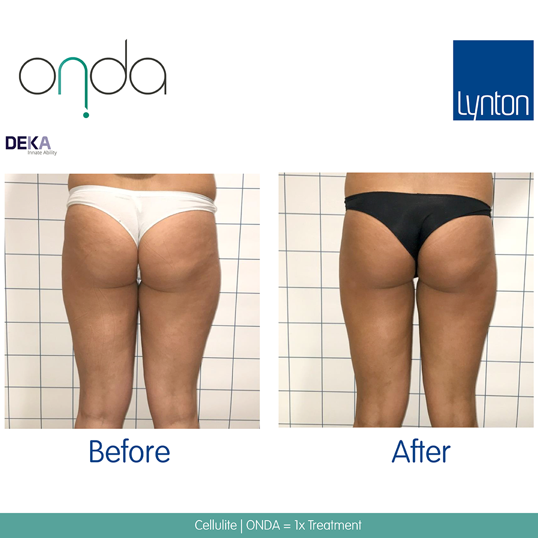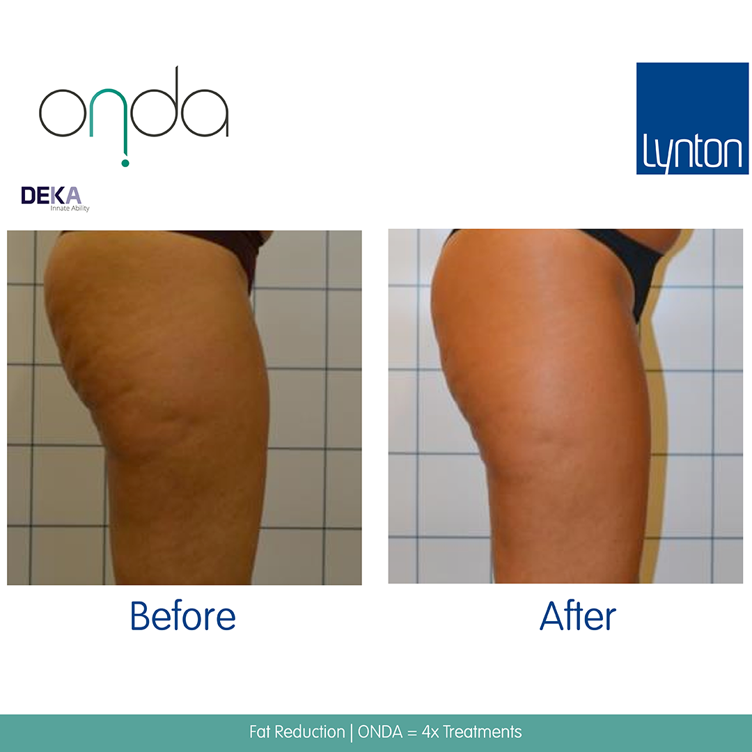 We recommend Onda® treatments spaced at 4 weeks apart for fat reduction, and 3-4 weeks apart for cellulite treatment.
