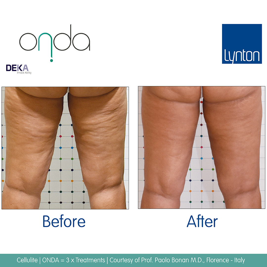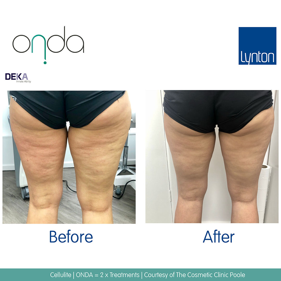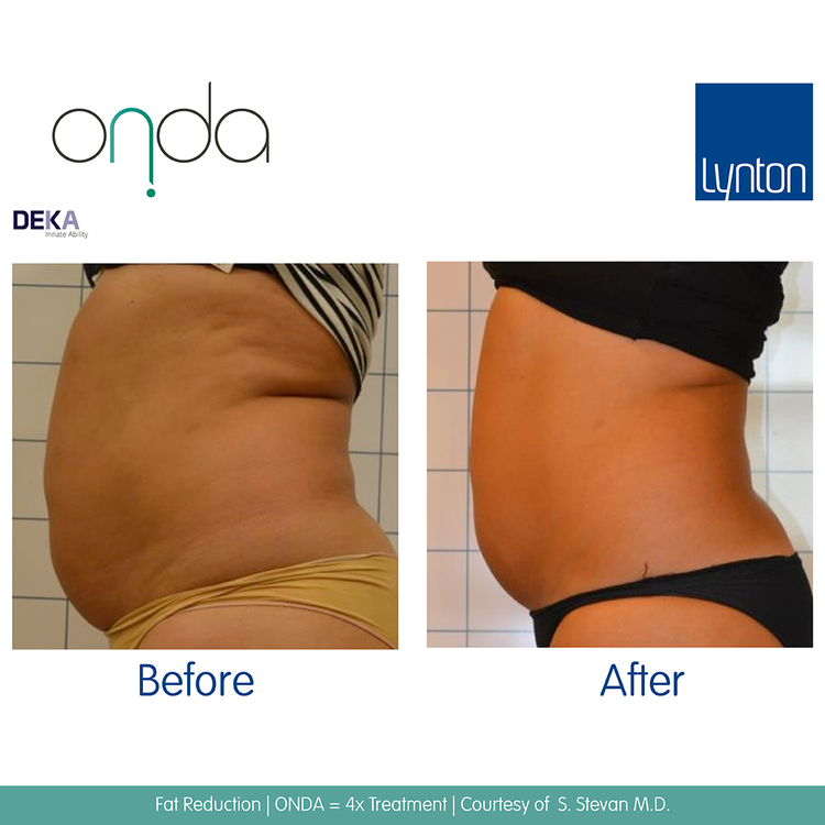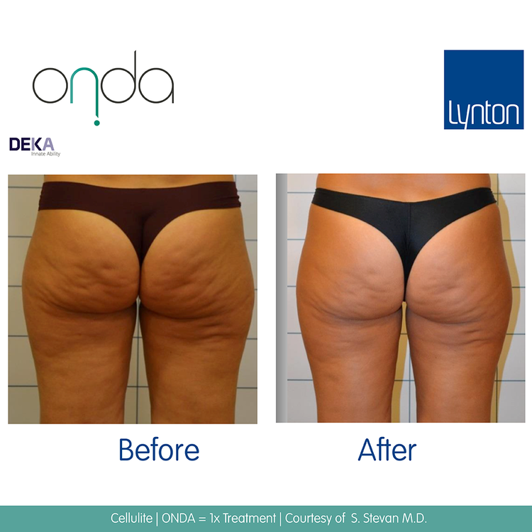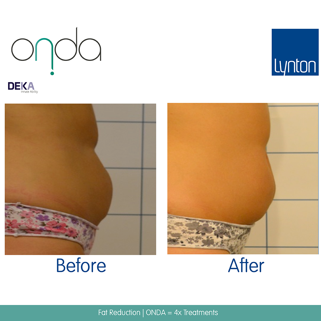 We recommend Onda® treatments spaced at 4 weeks apart for fat reduction, and 3-4 weeks apart for cellulite treatment.