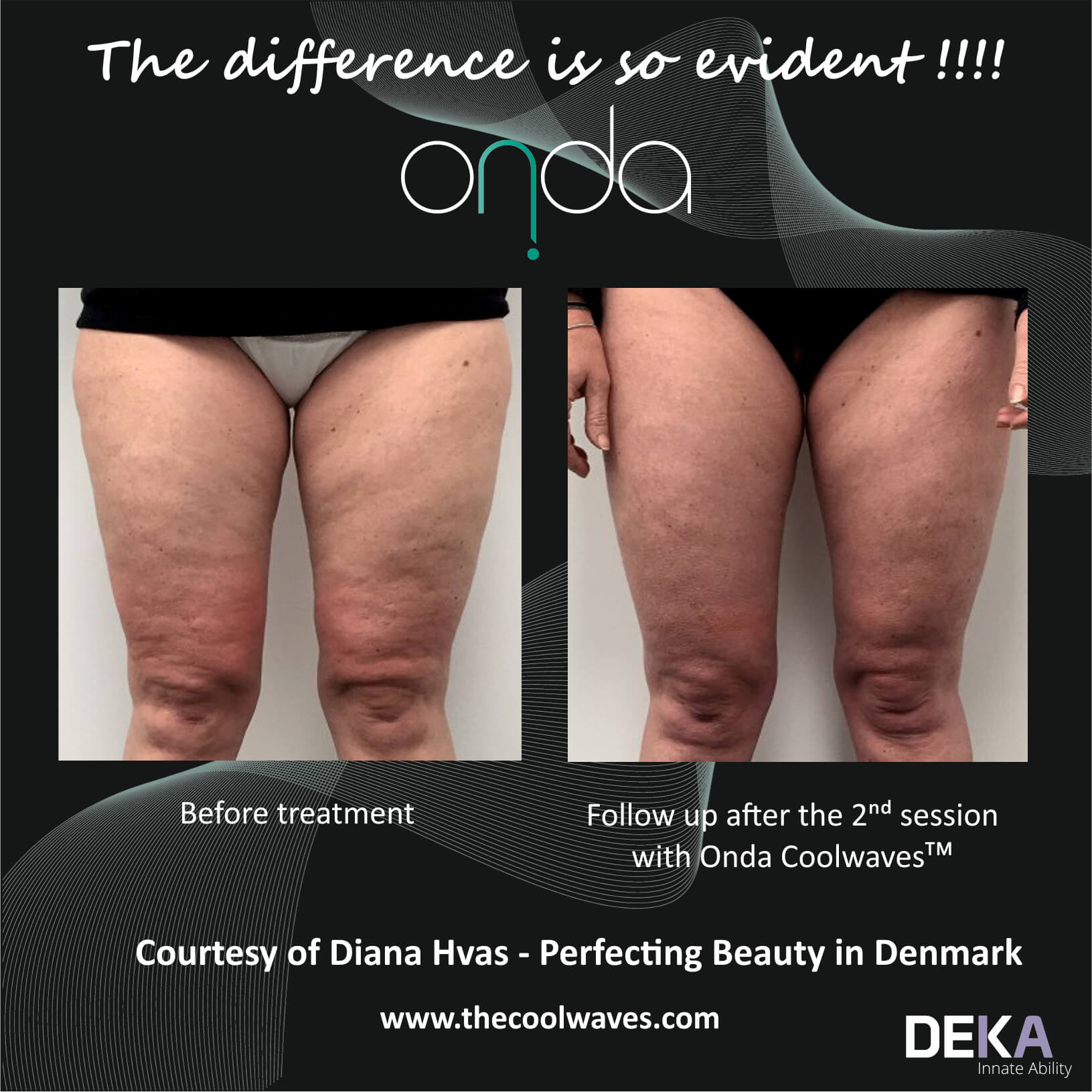 Laser Skin Renewal are pleased to announce we are the first clinic in Scotland to introduce the revolutionary and unique ONDA Coolwaves treatment, offering complete body contouring, targeting stubborn cellulite and localised fat.